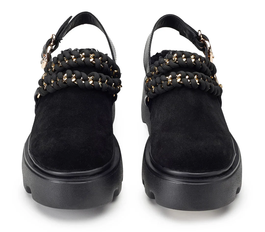 Questo modello presenta un’ampia tomaia in pelle scamosciata nera, nuovo accessorio scoobidoo catena: un’accattivante lavorazione ad intreccio su catena metallica diamantata, e le iconiche suole scanalate.