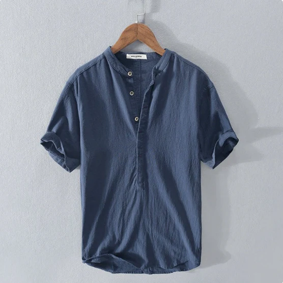 Realizzato con una lussuosa miscela di lino e cotone, questo capo garantisce un’esperienza morbida e rinfrescante, ovunque ti portino le tue avventure.