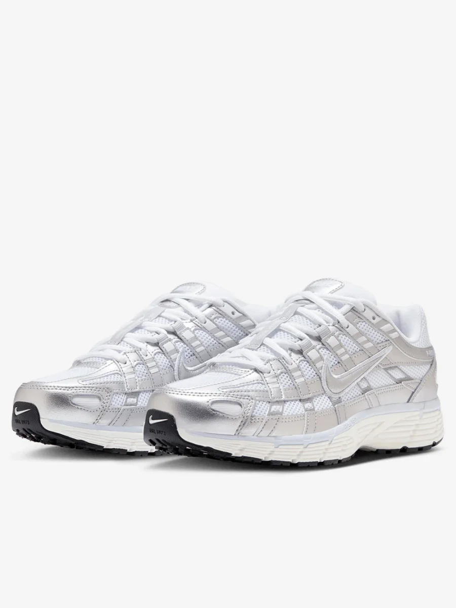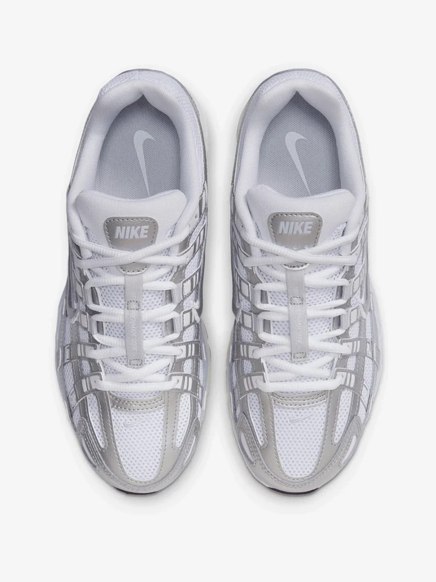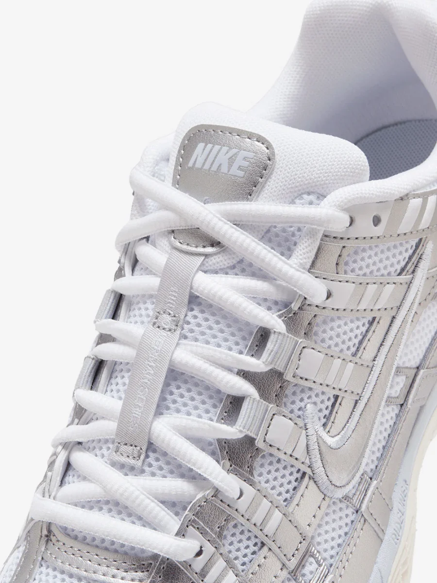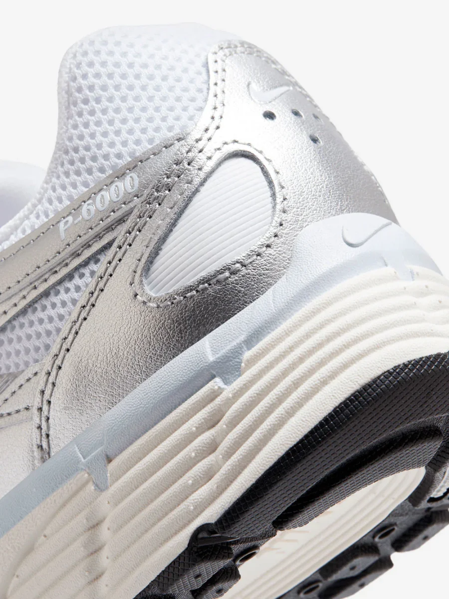 Nike P-6000 White Blue Tint Sail Metallic Silver reinterpreta il running anni 2000 con un look dinamico e leggero.
