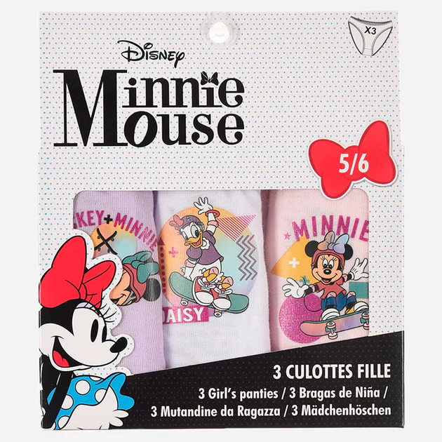 Pack 3 mutandine a tema Minnie Mouse. Prodotto a licenza ufficiale.