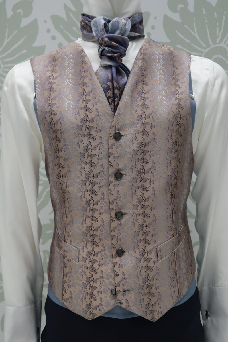 Panciotto glamour in broccato made in Italy 100% per abito da sposo uomo, che completa l’opera stilistica dell’abito, ma da indossare anche da solo, in una bellissima serata estiva. Lana seta 100% made in Italy.