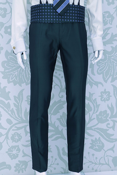 Pantalone abito da uomo verde bottiglia a coscia asciutta da poter indossare in qualunque occasione realizzato in broccato di seta made in Italy 100%.