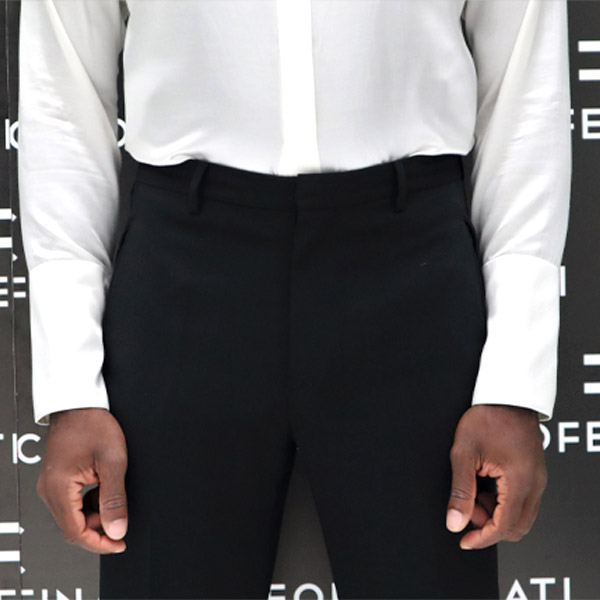 Pantalone nero o blu notte con banda laterale per abito da uomo SMOKING cerimonia classica da indossare esclusivamente nelle cerimonie pomeridiane o serali con invito “cravatta nera”, assolutamente da bandire per i matrimoni diurni.