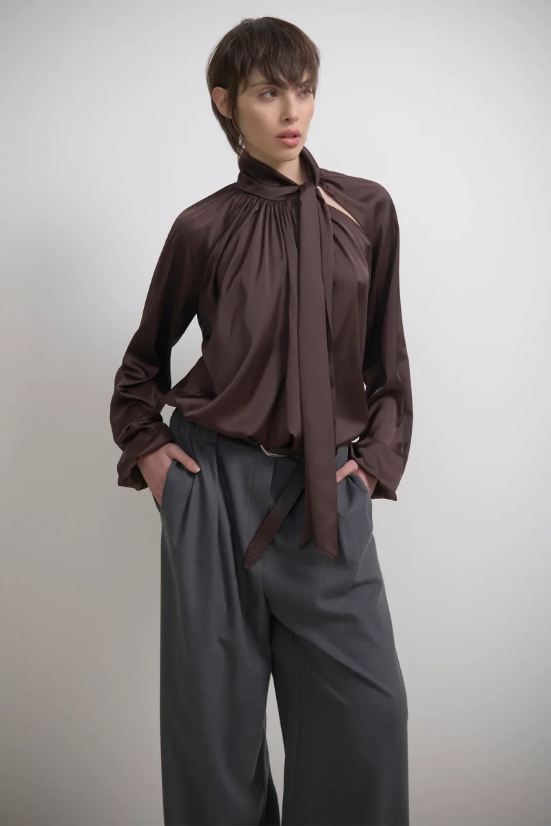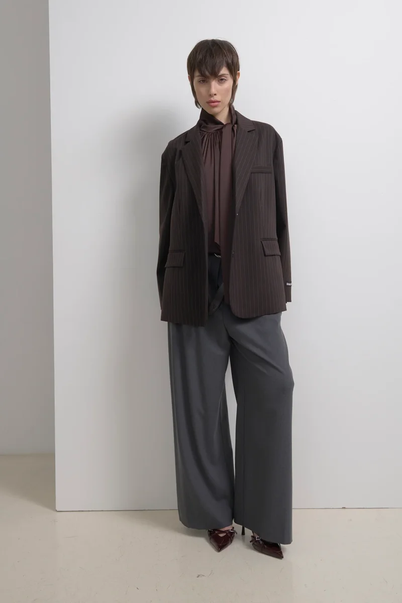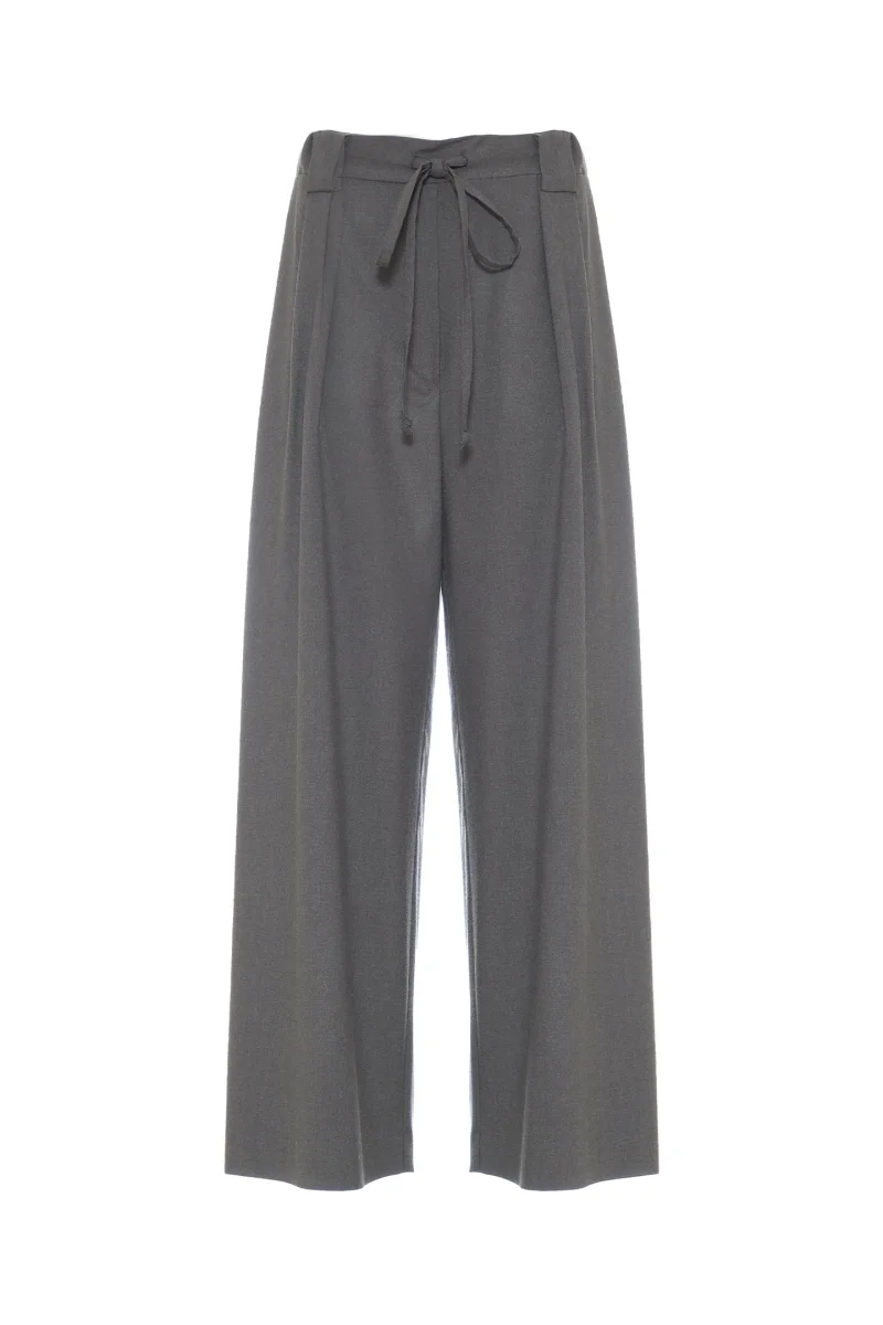 PANTALONI AMPI A GAMBA LARGA IN TESSUTO FLUIDO MISTO VISCOSA DALL’EFFETTO MÉLANGE.