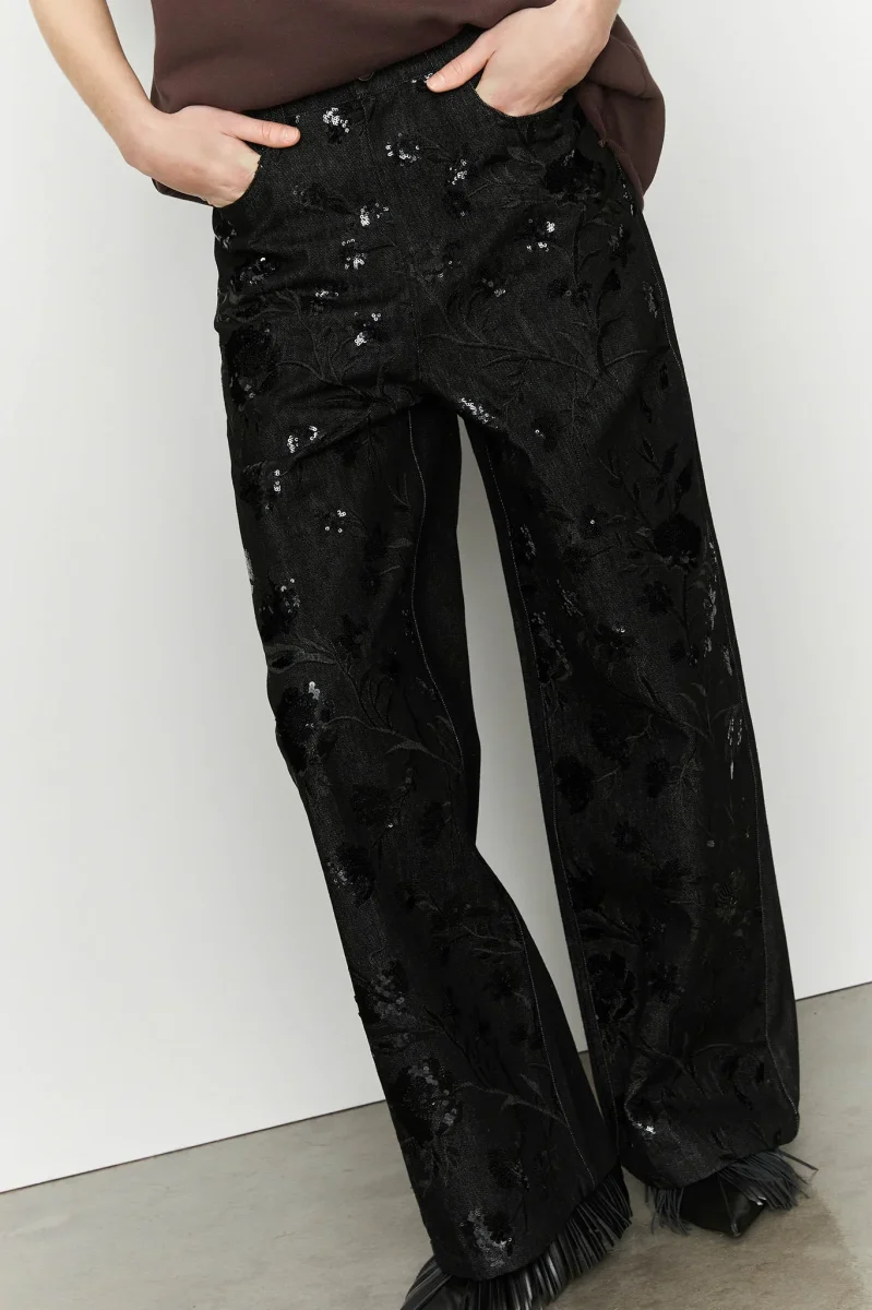 PANTALONI IN DENIM CON RICAMO SUL DAVANTI.