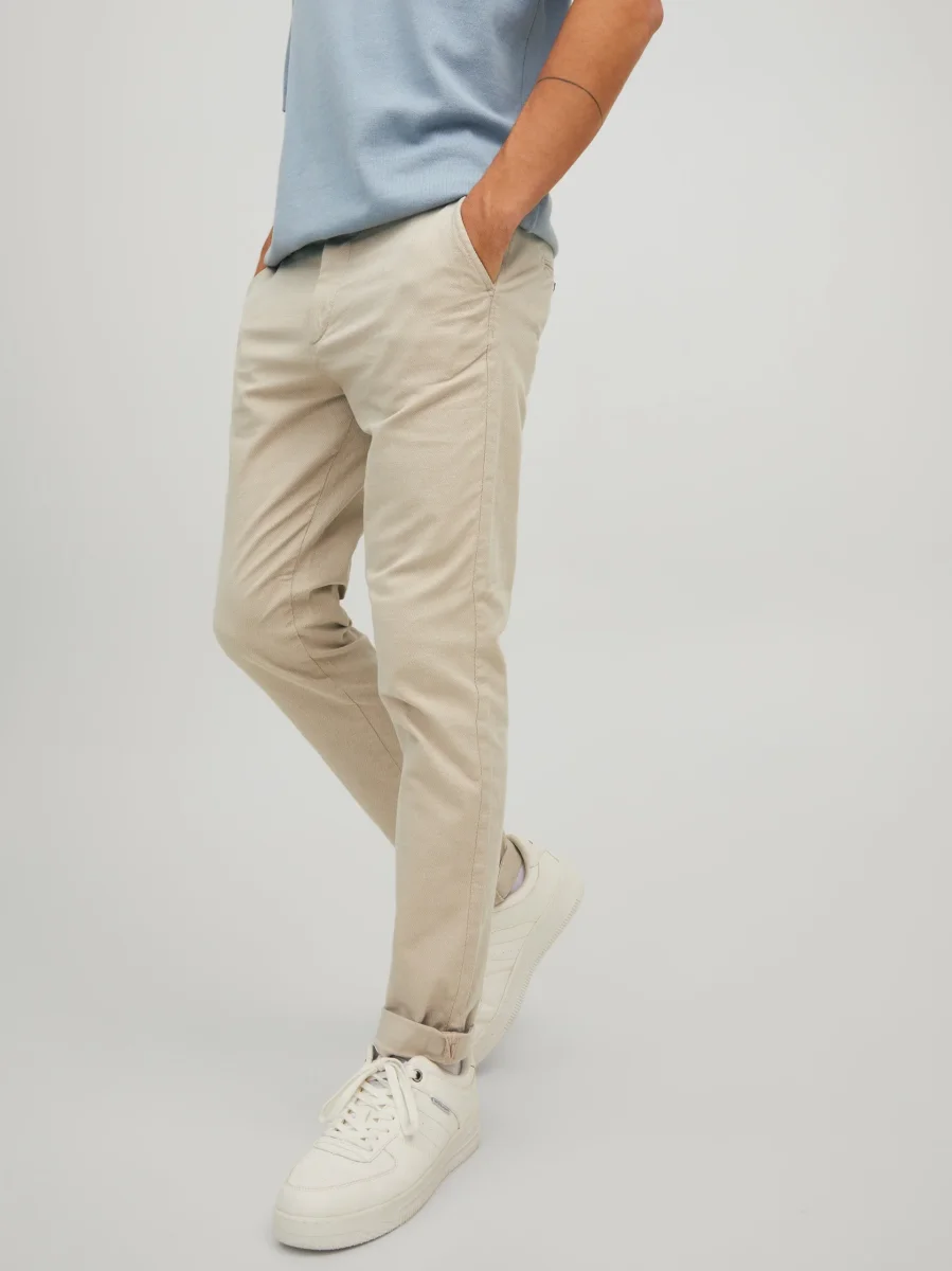 I pantaloni chino sono un modello essenziale di questa categoria. Sono una via di mezzo tra un pantalone da abito e uno stile casual 5 tasche. Si tratta di un modello semplice, con solo tasche frontali e posteriori.