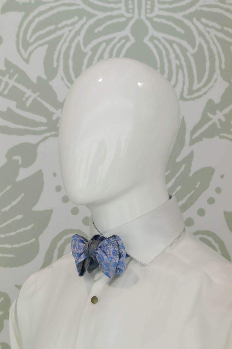 Papillon double per abito da uomo glamour made in Italy 100% in broccato azzurro carta da zucchero e sabbia, da portare al posto del plastron per un look più dandy. Seta 100%.