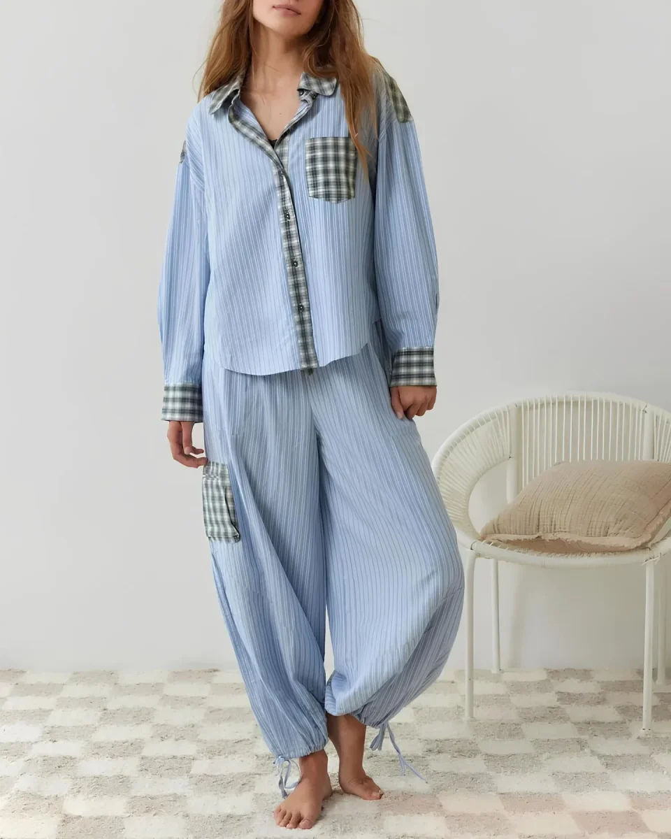 Il top del pigiama Glimmer si distingue per un design elegante e senza tempo. Grazie al tessuto morbido e alla qualità duratura, questo set si presenta come l’ideale compagno per un sonno rigenerante.