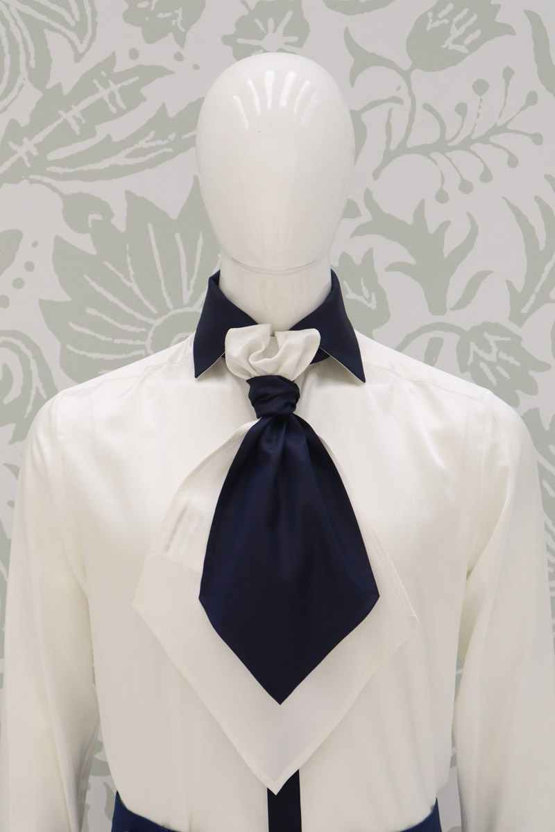 Ricercato accessorio da collo, il plastron per abito da sposo uomo, richiama alla memoria gli accessori utilizzati dal Settecento all’Ottocento.