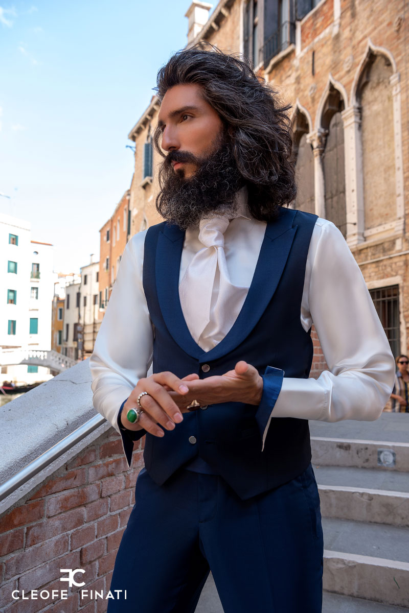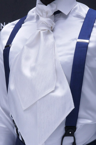 Ricercato accessorio da collo, il plastron per abito da sposo uomo, richiama alla memoria gli accessori utilizzati dal Settecento all’Ottocento.