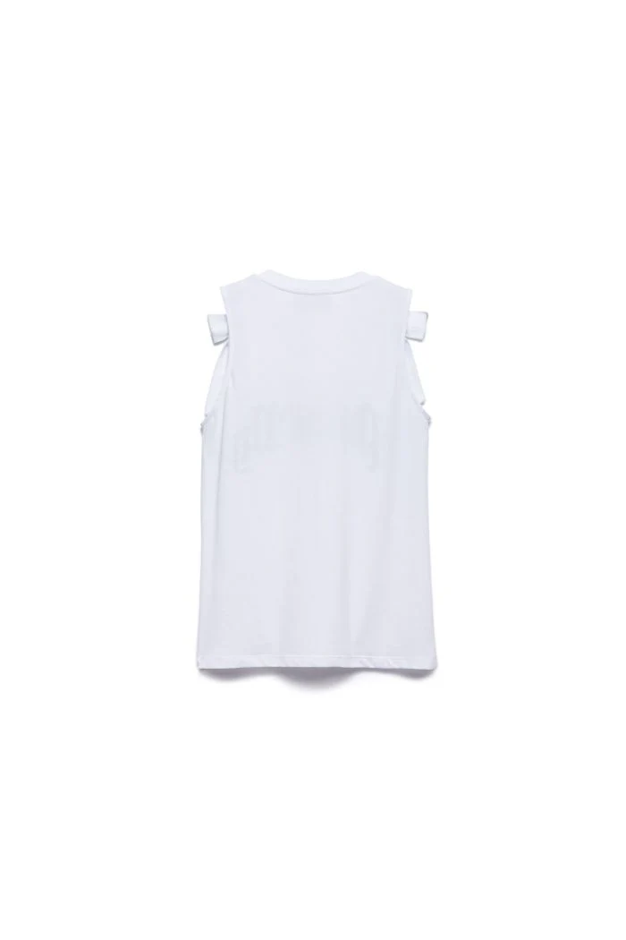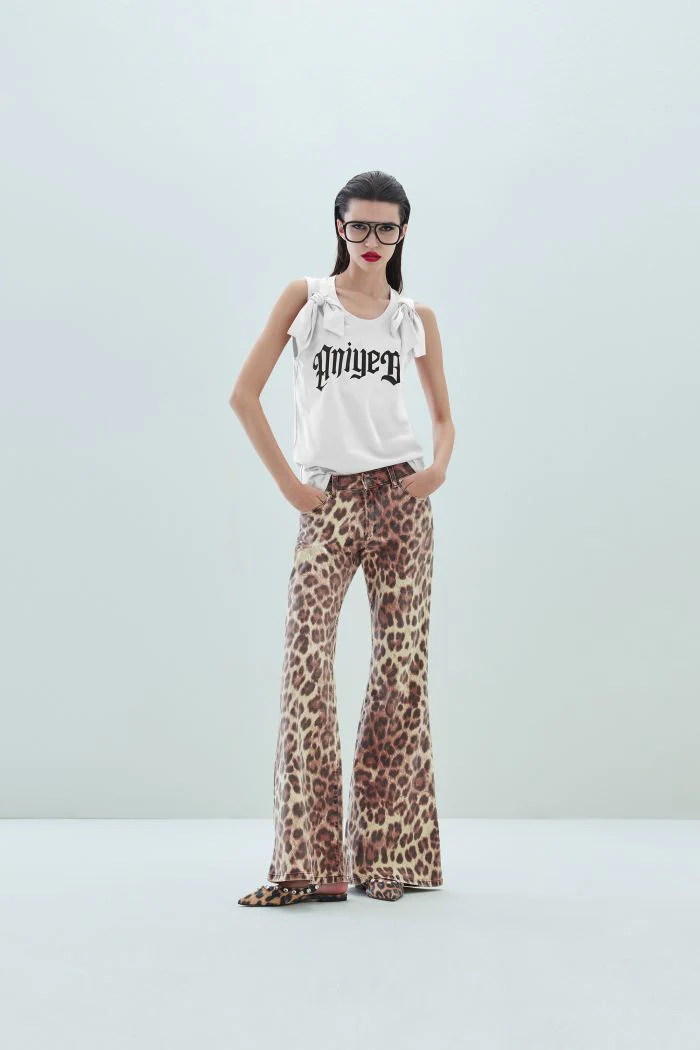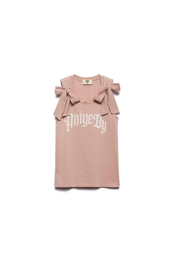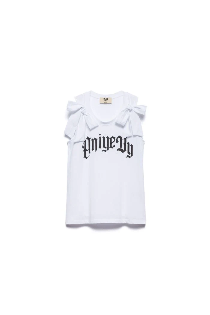 IL TOP GIN È UN’ESPLOSIONE DI ENERGIA ANIYE BY. IL MODELLO È REALIZZATO IN JERSEY DI COTONE CON SCOLLATURA ROTONDA E FIOCCHI SULLE SPALLE. IL LETTERING IN STILE GOTICO DONA AL LOOK UNA NOTA ICONICA DAL CARATTERE DECISO.