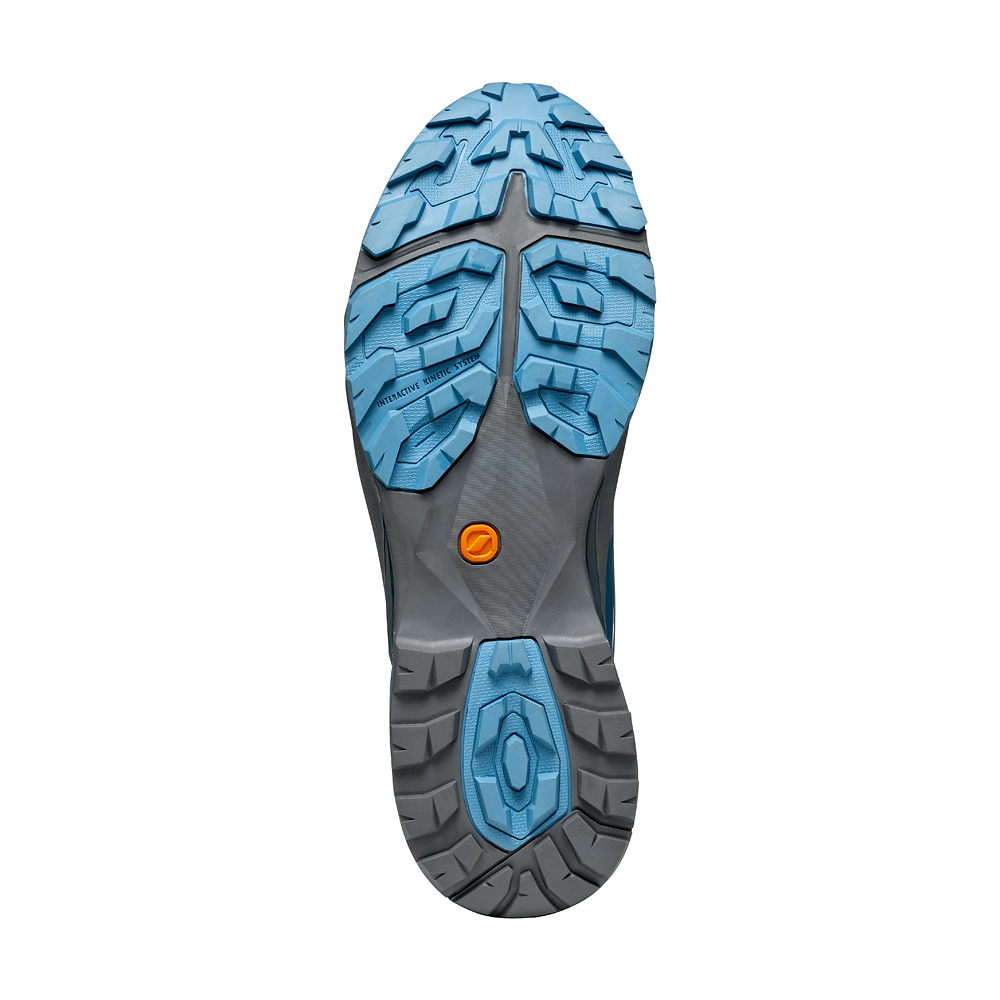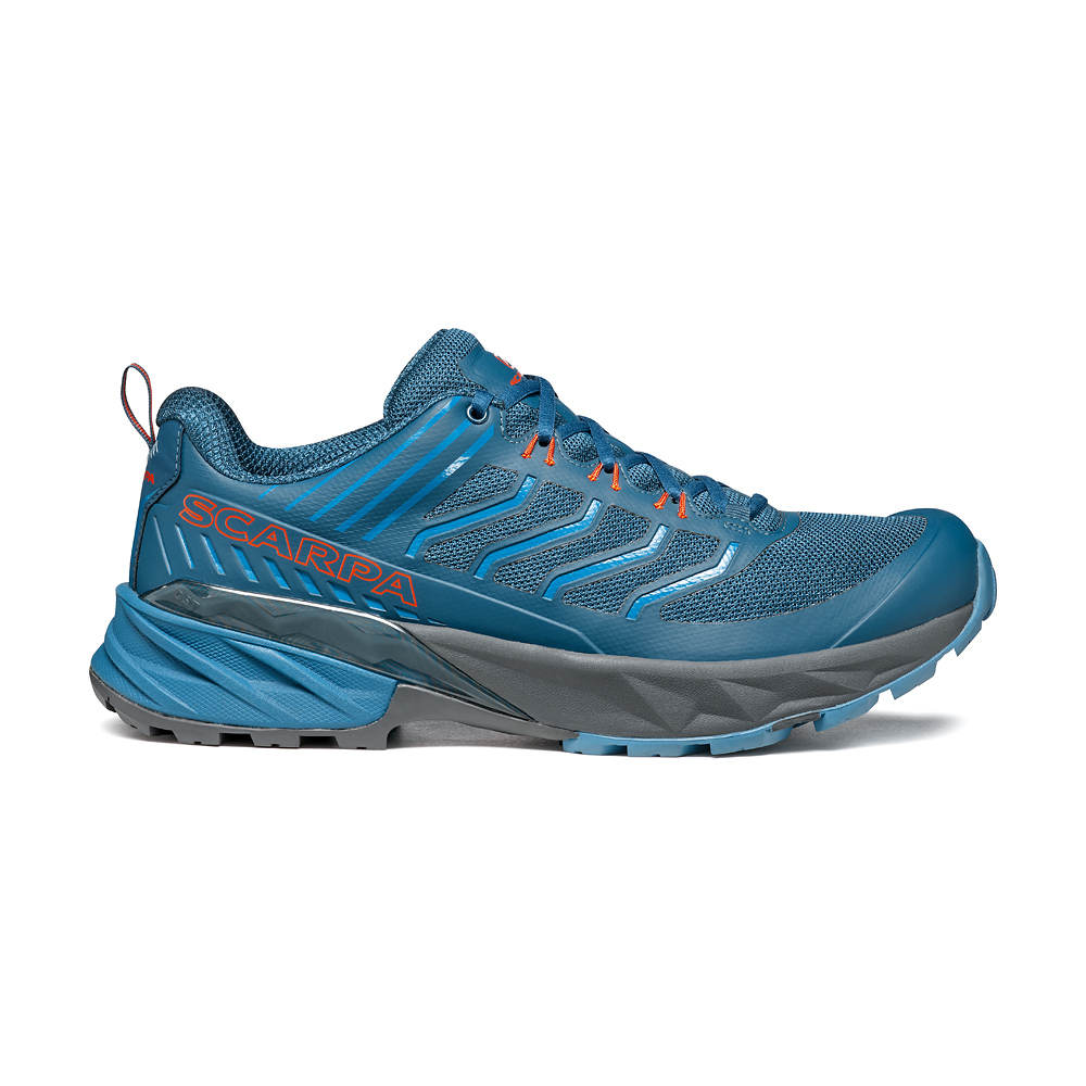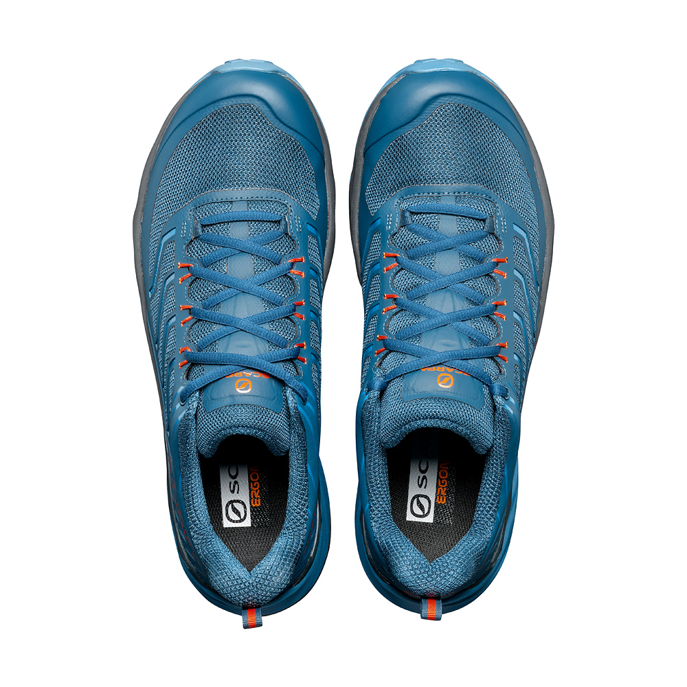 Mesh, con gabbia esterna in film termosaldato di sostegno, disegno SCARPA®. La tomaia include un puntale di protezione agli urti interno.