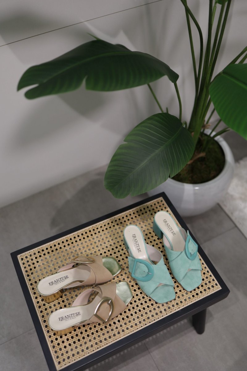 Sandalo in vera pelle e vero camoscio, lavorazione artigianale