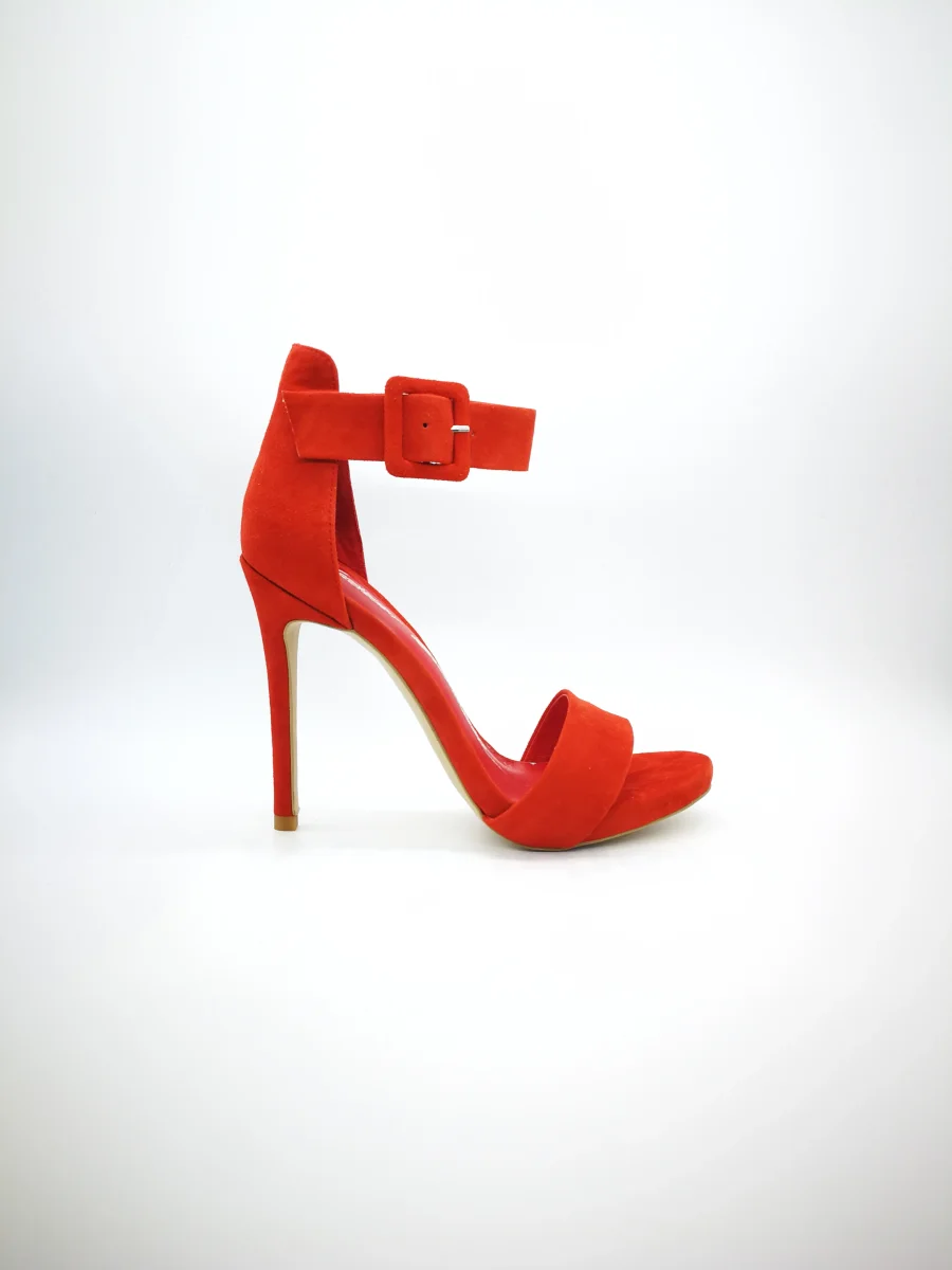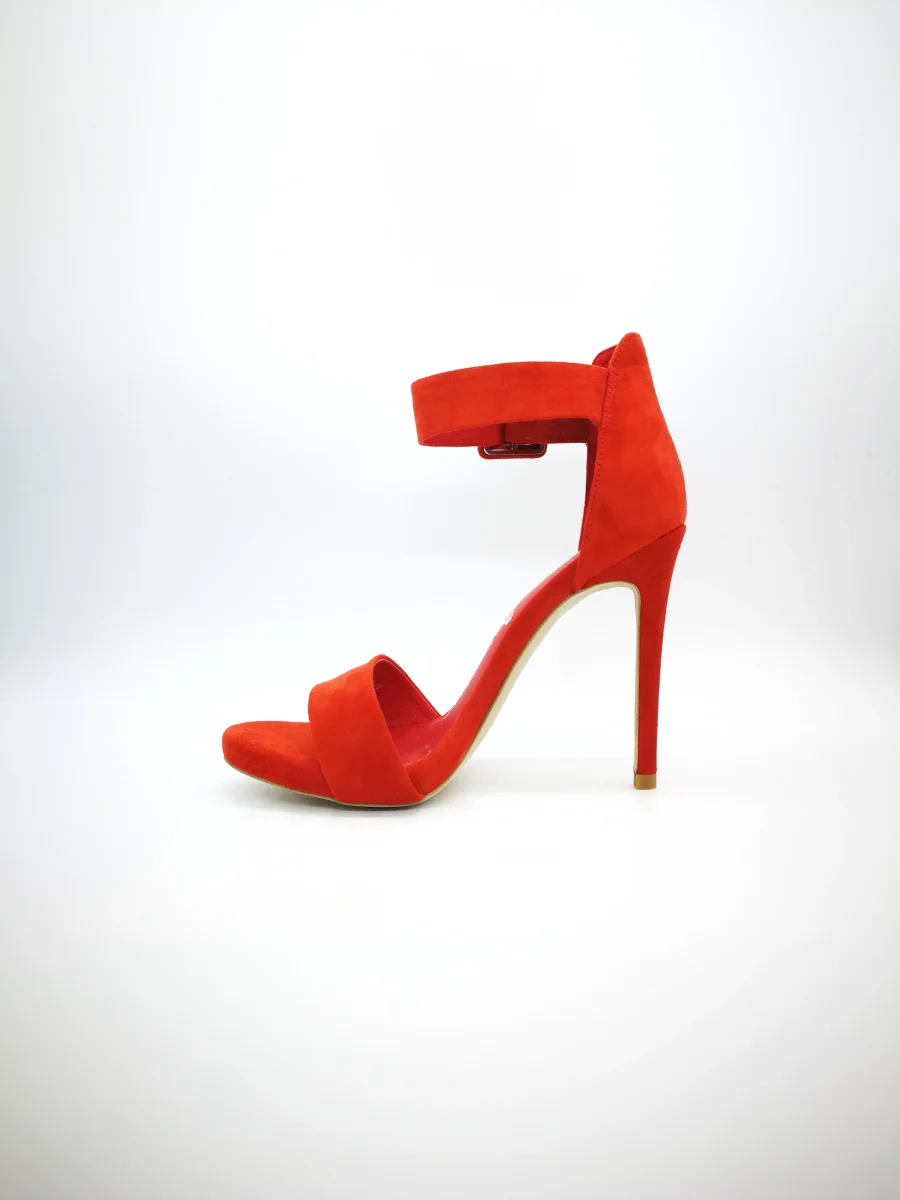 Sandalo con tacco a spillo, altezza 13, plateau sotto la pianta altezza 1 cm, tallonetto con braccialetto alla caviglia, fascetta sulla pianta