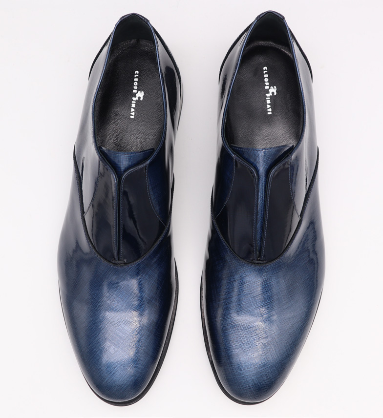 Pantalone abito da sposo uomo blu linea classica fashion a coscia asciutta da poter indossare in qualunque occasione, realizzato in raso di seta lana made in Italy 100%.
