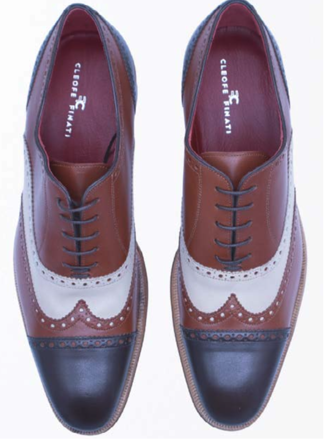 Scarpe uomo stringate da sposo in vitello a tre colori, crema e cuio