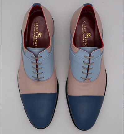 Scarpe pantofole da sposo in vitello, punta blu navy e collo azzurro.