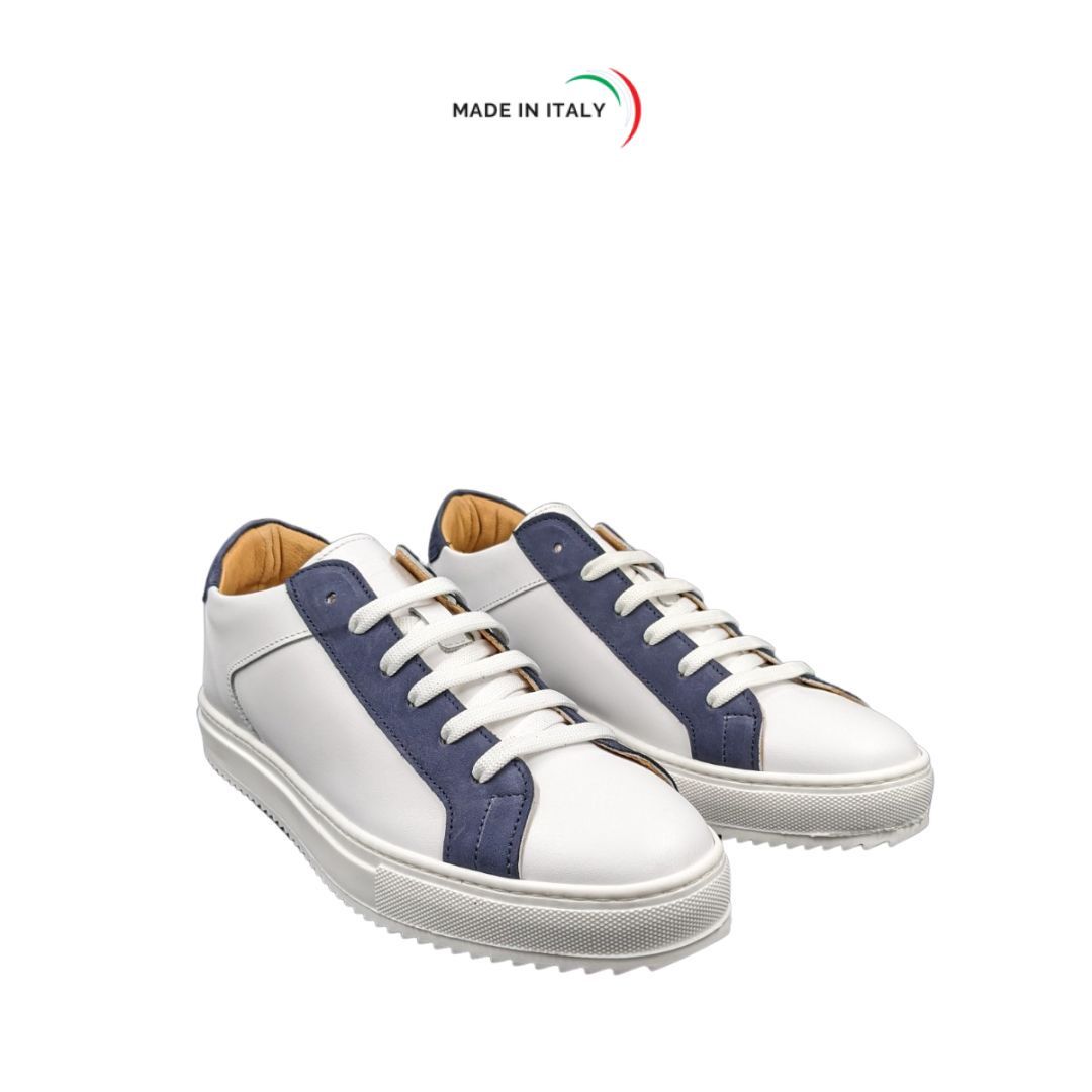 Sneakers bassa da Uomo in Pelle Bianca e Blue