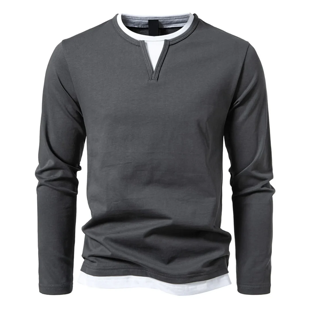 Il particolare design con scollo a V e l’effetto a strati della maglia crea un look moderno e distintivo, perfetto per chi ama distinguersi con un tocco di eleganza casual in ogni contesto, dal lavoro al tempo libero.