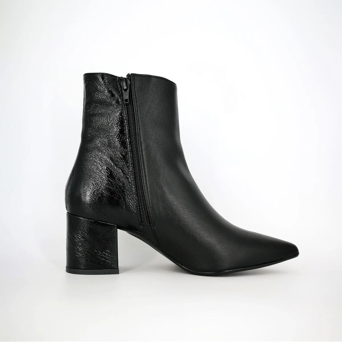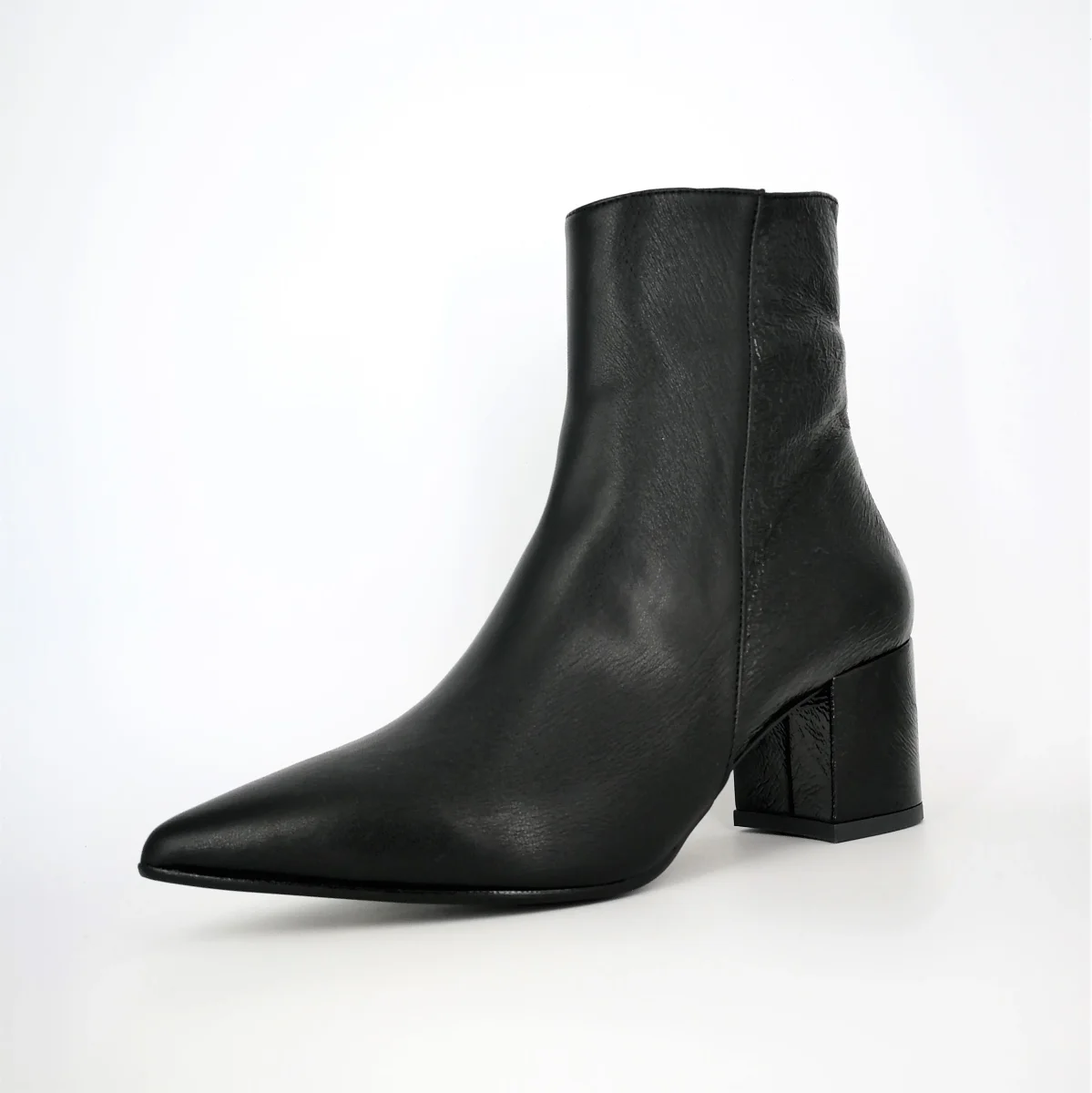 Stivaletto donna , tacco 50, in pelle con zip interna.