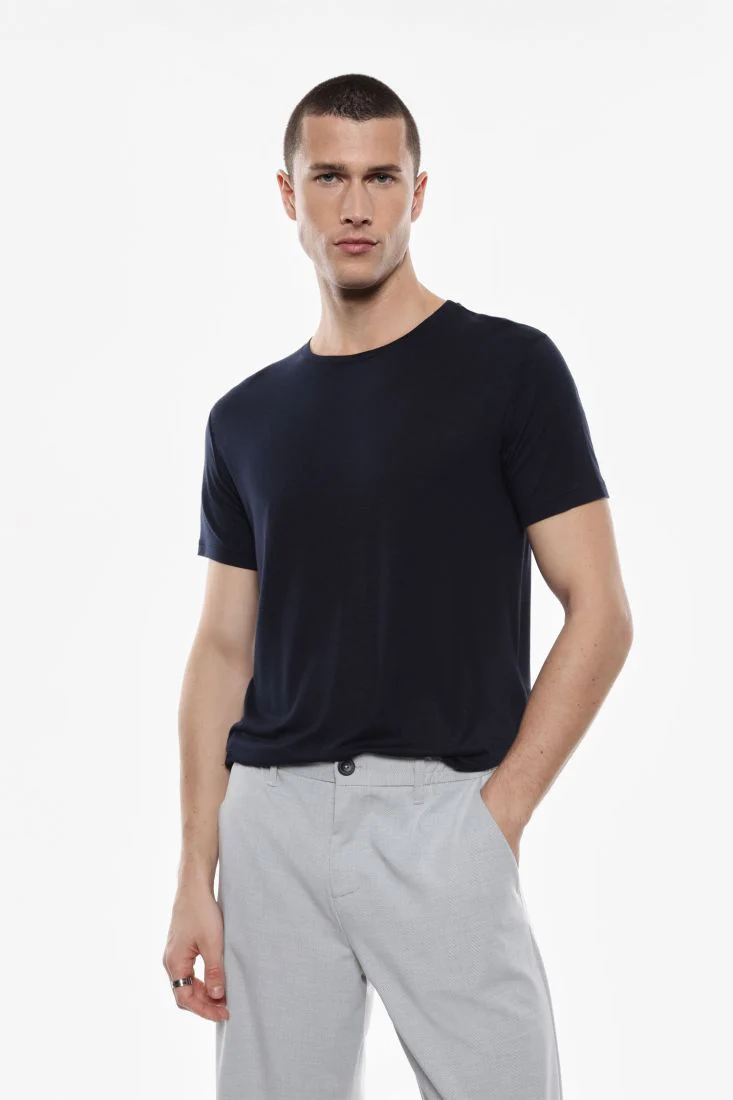 Una t-shirt versatile che si adatta perfettamente al gusto urbano. Caratterizzata da un girocollo pulito e maniche corte, offre un perfetto equilibrio tra comfort e raffinatezza. Un capo essenziale per chi cerca un look moderno e minimale, ideale per completare qualsiasi outfit con un tocco di sobrietà e classe.