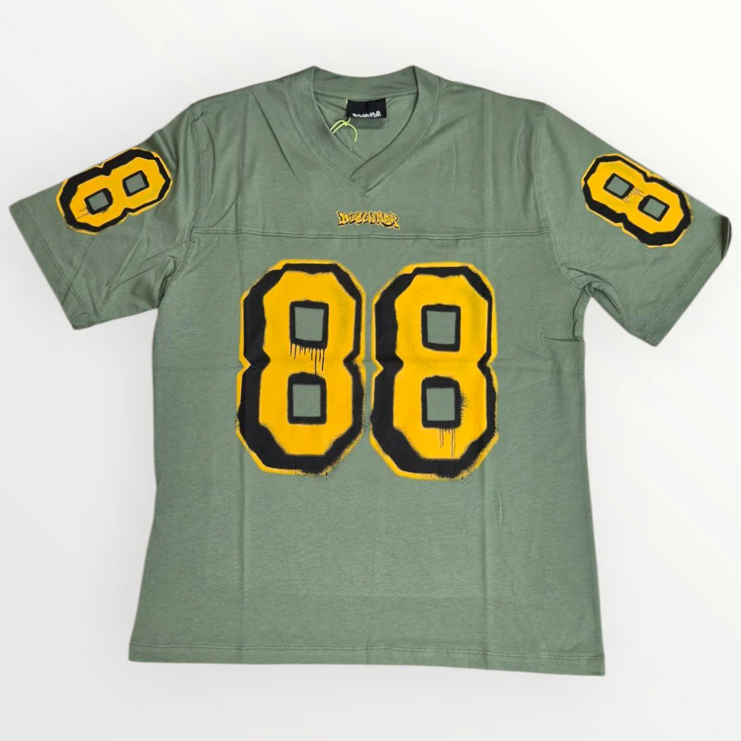 T-shirt tinta unita, manica corta, modello basket, stampa con numero e logo sul davanti e sul retro.