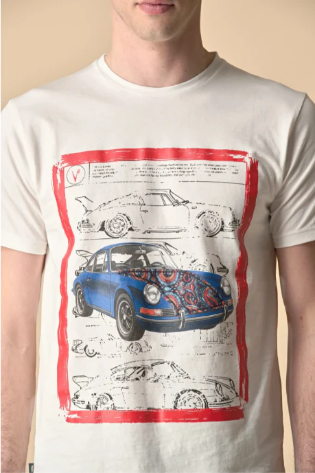 T-SHIRT PANNA STAMPA SUPERCAR CON INSERTO E INTERNO COLLO IN TESSUTO – V2