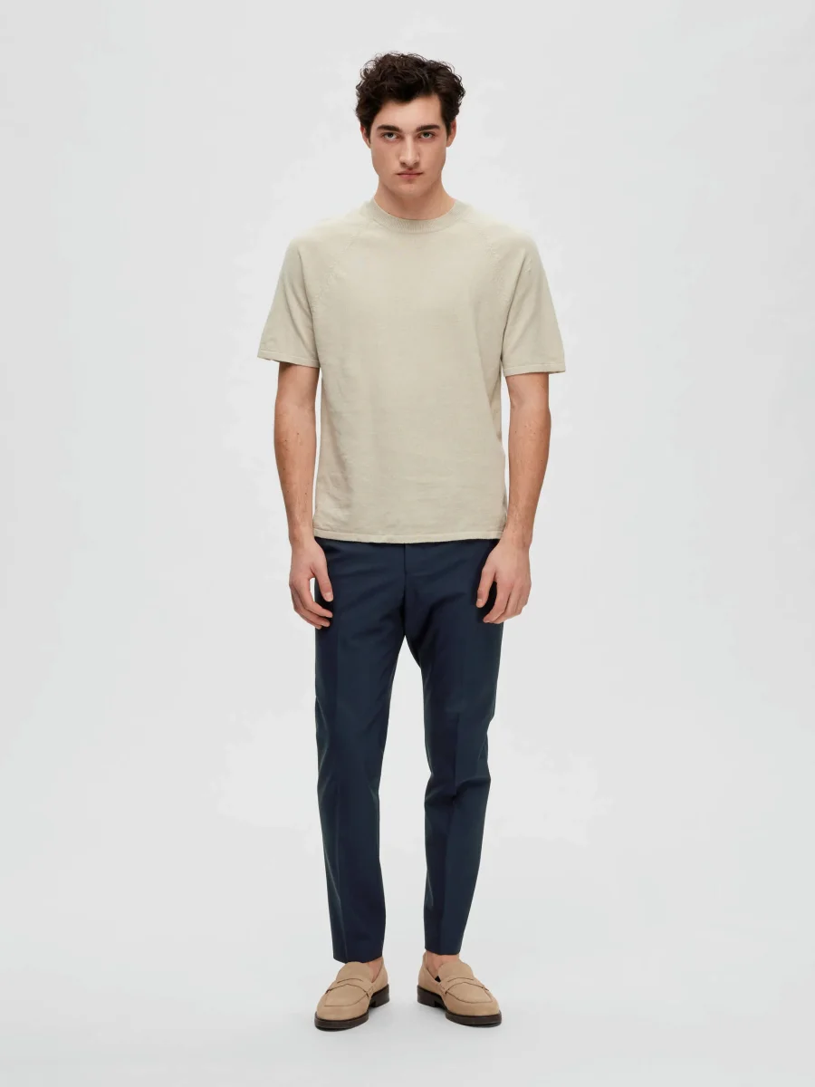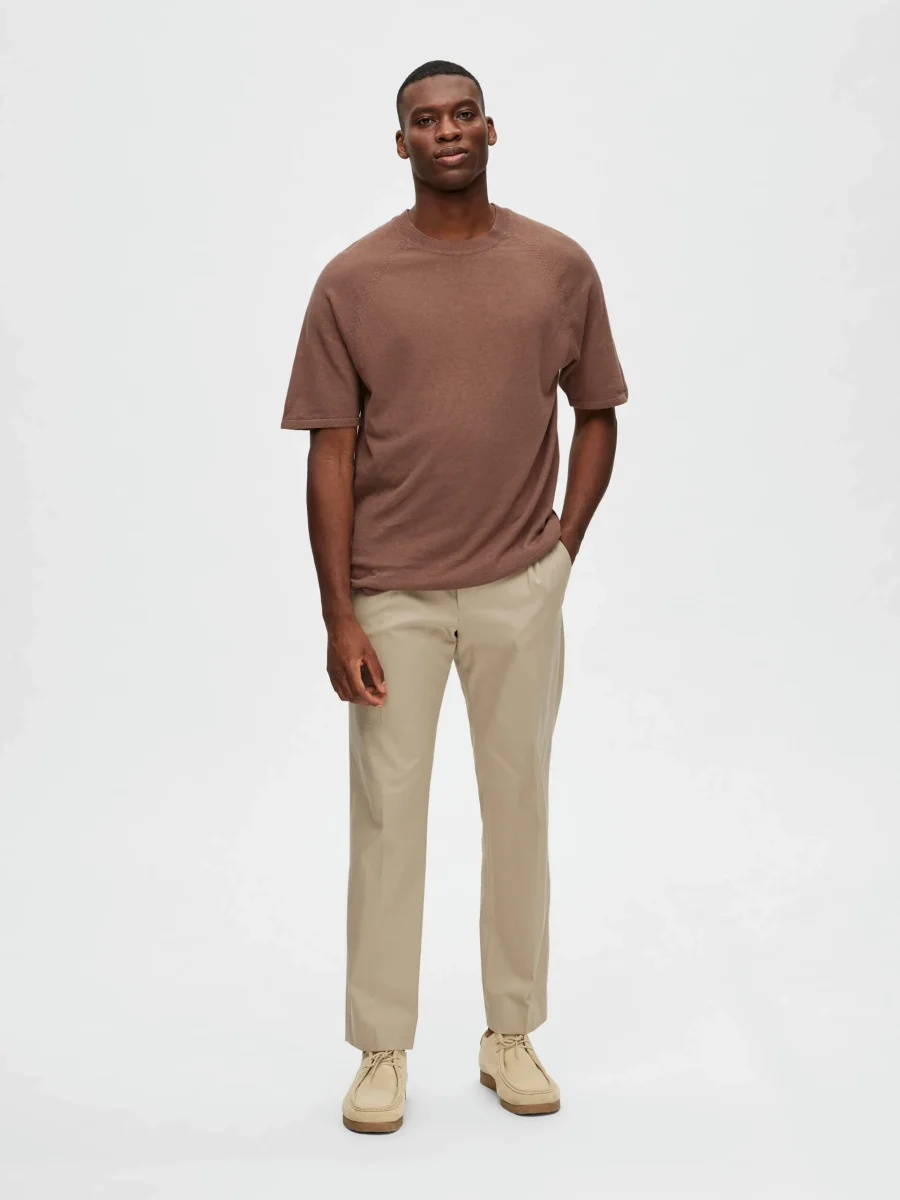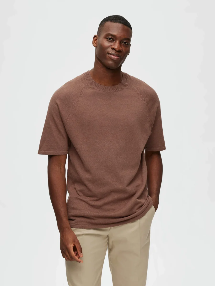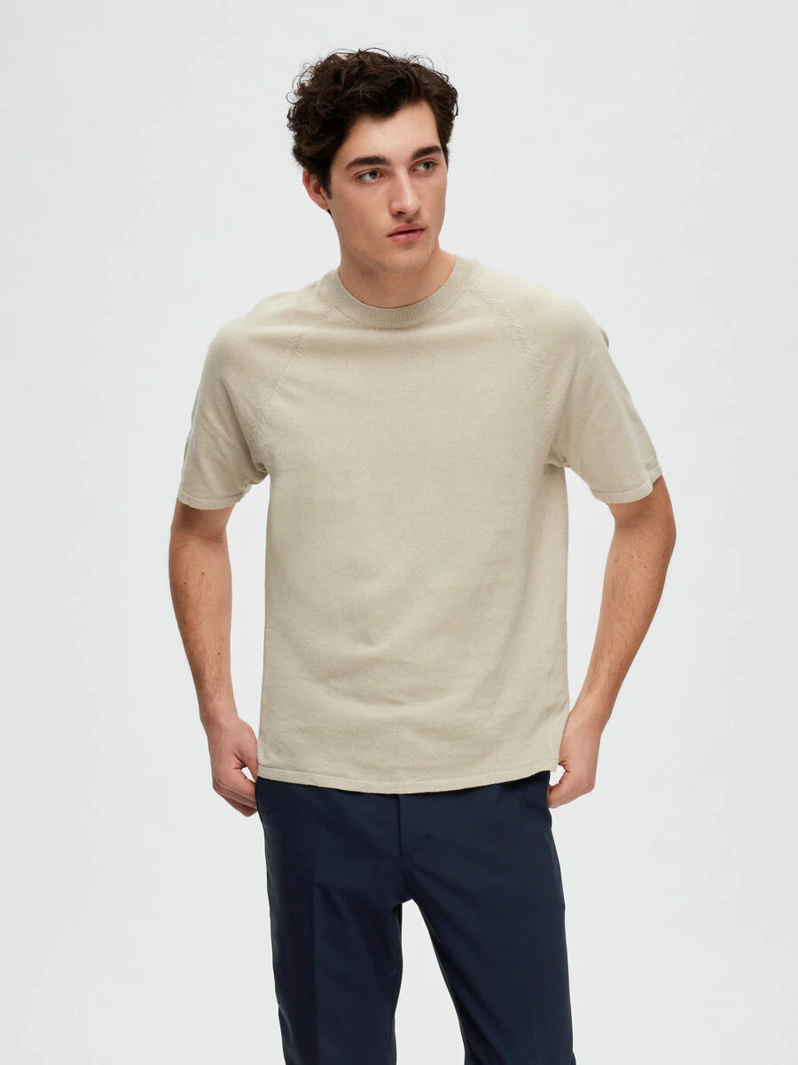 Design classico in una trama unica con dettagli sofisticati. Realizzato in misto lino-cotone, questo top in maglia ricorda una t-shirt con il suo girocollo a coste sottili e le maniche corte raglan. Ha una vestibilità regolare, che lo rende perfetto da indossare a strati sotto un blazer o una giacca.