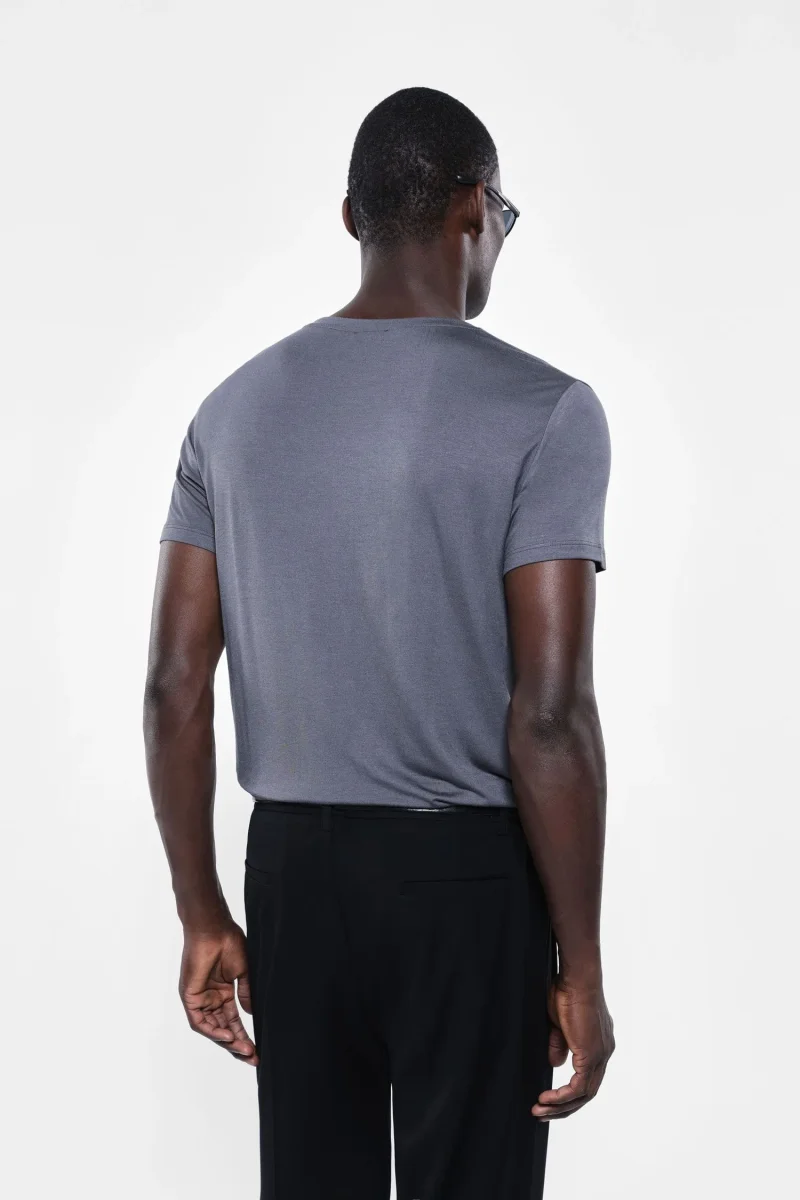 Eleganza minimalista per chi desidera distinguersi con discrezione. Questa t-shirt a maniche corte è perfetta per un look sofisticato ma rilassato, grazie al suo design pulito e alla scollatura rotonda. Ideale per essere abbinata a completi casual o più formali, rappresenta una scelta versatile per il guardaroba di ogni uomo metropolitano.