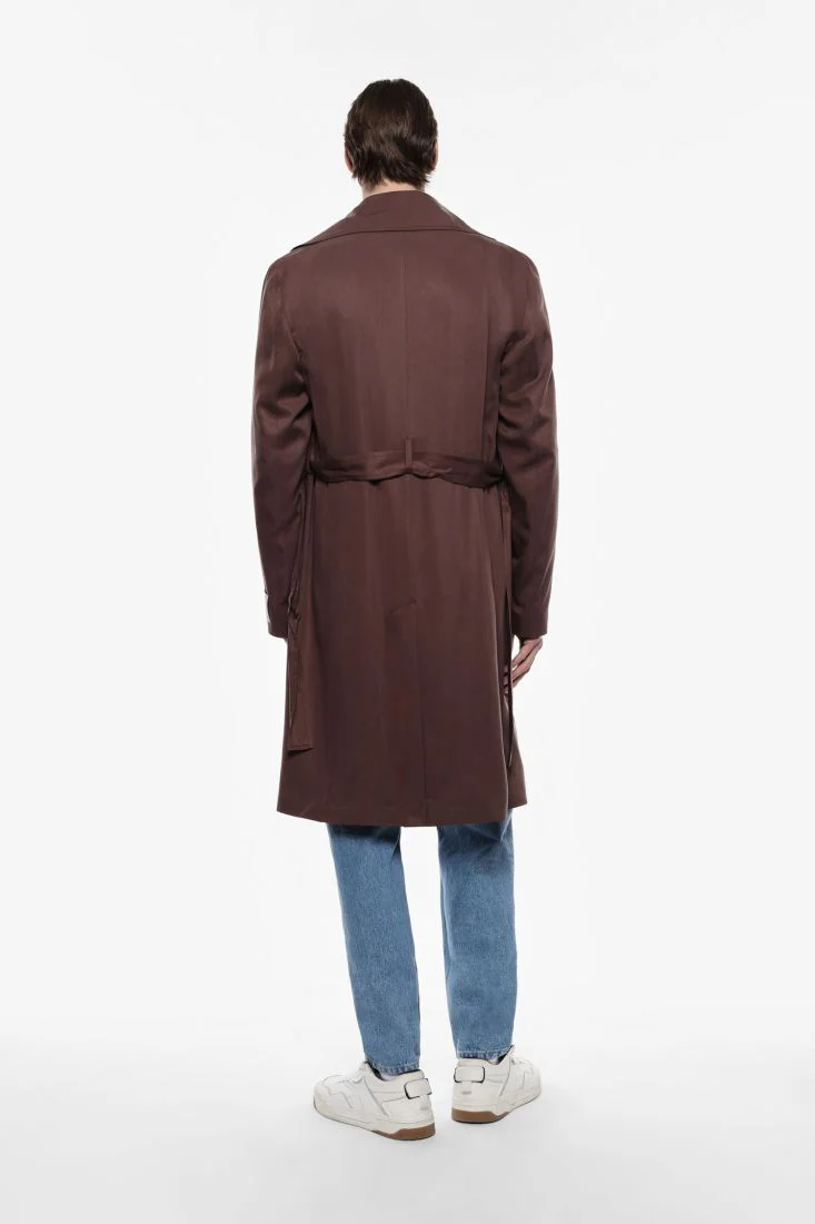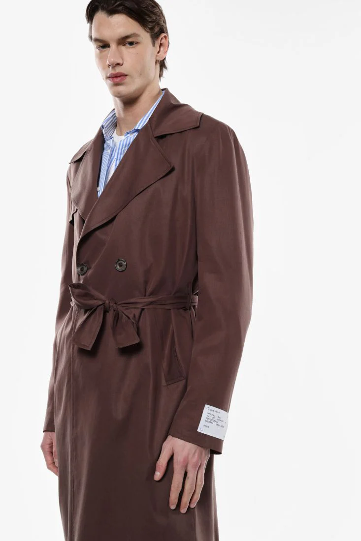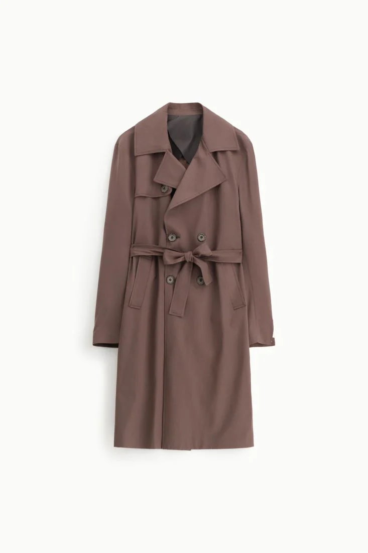 Un trench che incarna il fascino della vita urbana. La doppia abbottonatura e la cintura in vita conferiscono una silhouette che unisce comfort e stile.