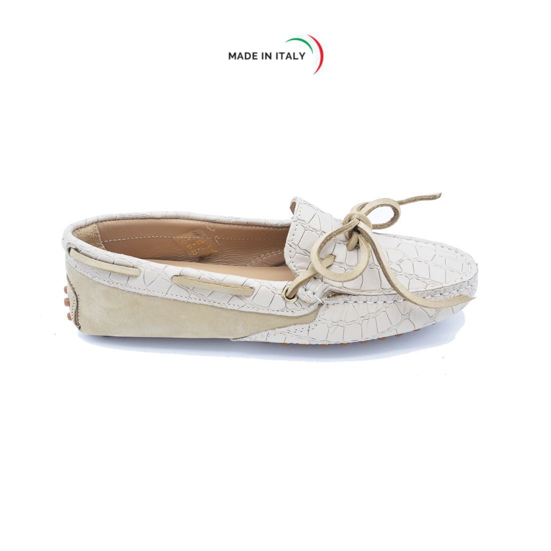 Mocassino Gommino da Donna in camoscio colore beige con lacci