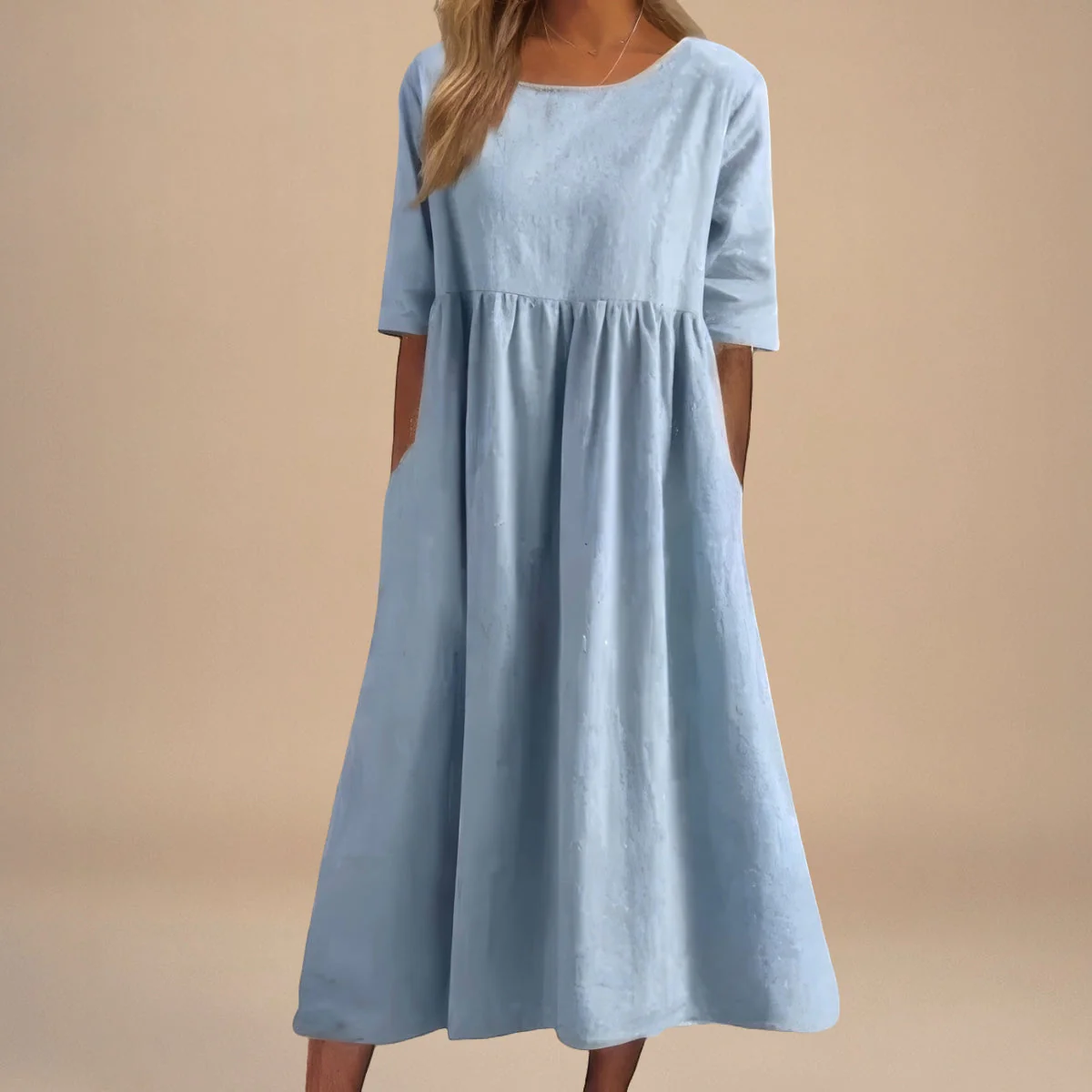 Nina – Elegante Abito In Cotone Senza Maniche Con Tasche