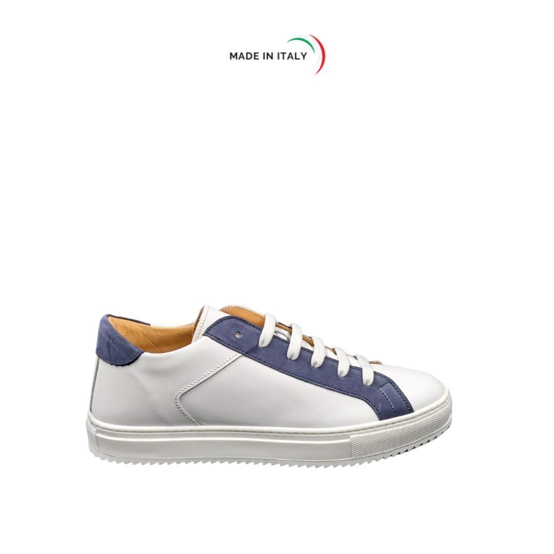 Sneakers bassa da Uomo in Pelle Bianca e Blue